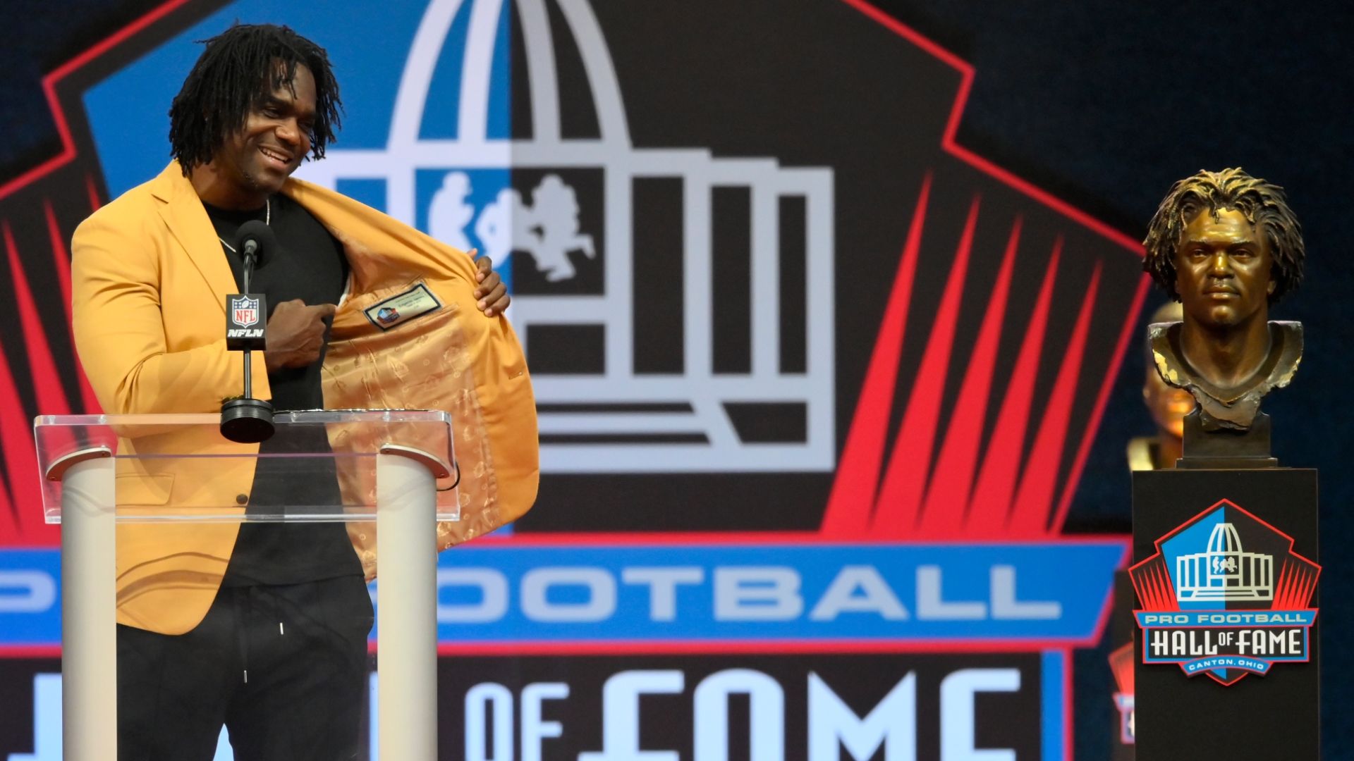 James received his gold jacket and got a first look at his hall of fame bust during the.